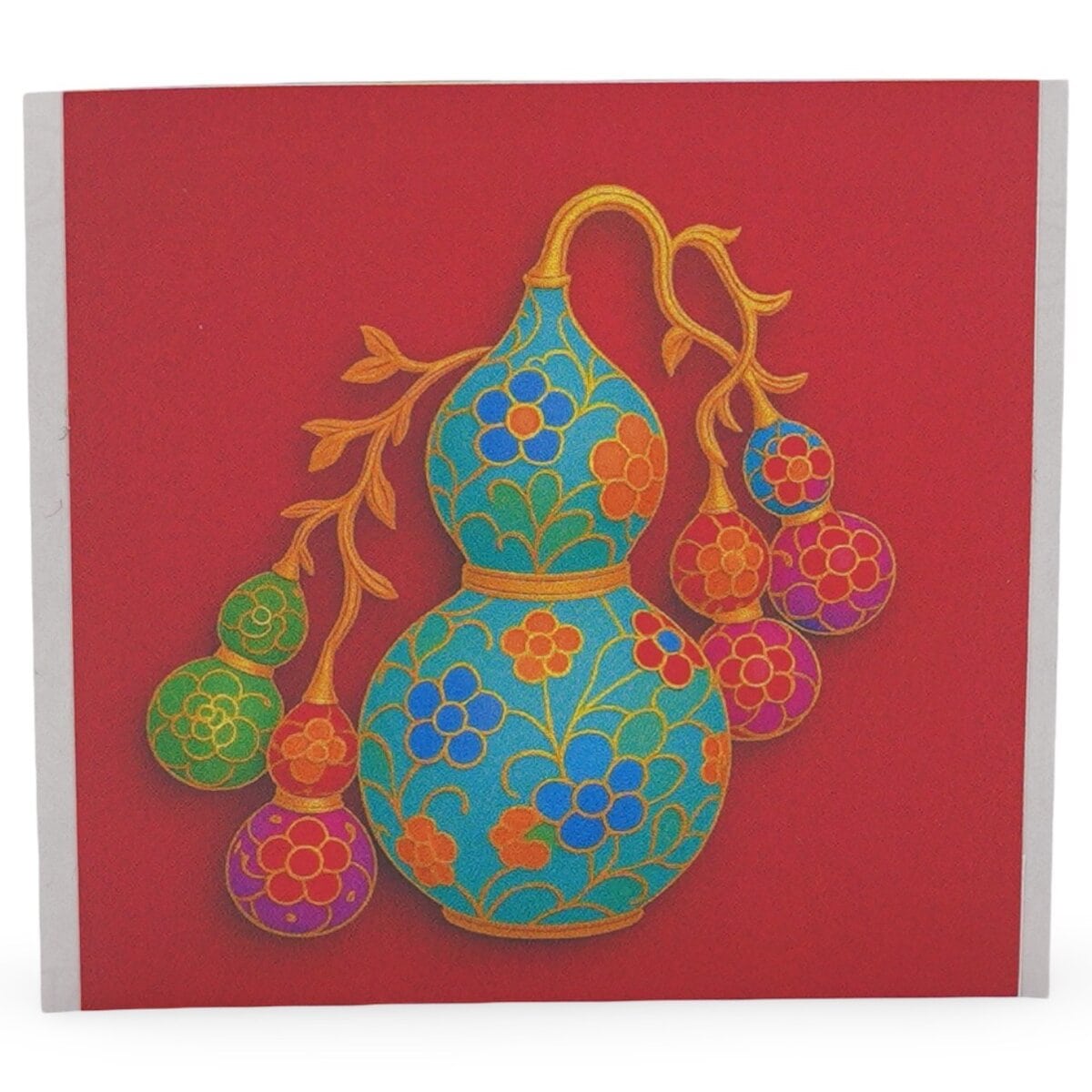Pe suprafața multicoloră se vede un Wu Lou mare cu motive florale, atent ilustrat pentru a sugera echilibru, sănătate și un flux blând de energie. Culorile sunt intense și armonioase, gândite să aducă un strop de bucurie vizuală în fiecare zi, fie că îl aplici pe telefon, pe laptop sau pe o altă suprafață netedă din spațiul tău personal.