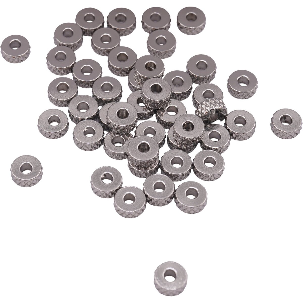 Acești bumbi distanțieri rotunzi plați din inox sunt accesorii practice pentru confecționarea bijuteriilor, potrivite atunci când vrei să obții un design mai ordonat și mai bine definit. În nuanță argintie și cu formă de rondele, piesele au un aspect simplu, ușor de integrat în brățări, coliere sau cercei, atât în proiecte delicate, cât și în combinații mai elaborate.