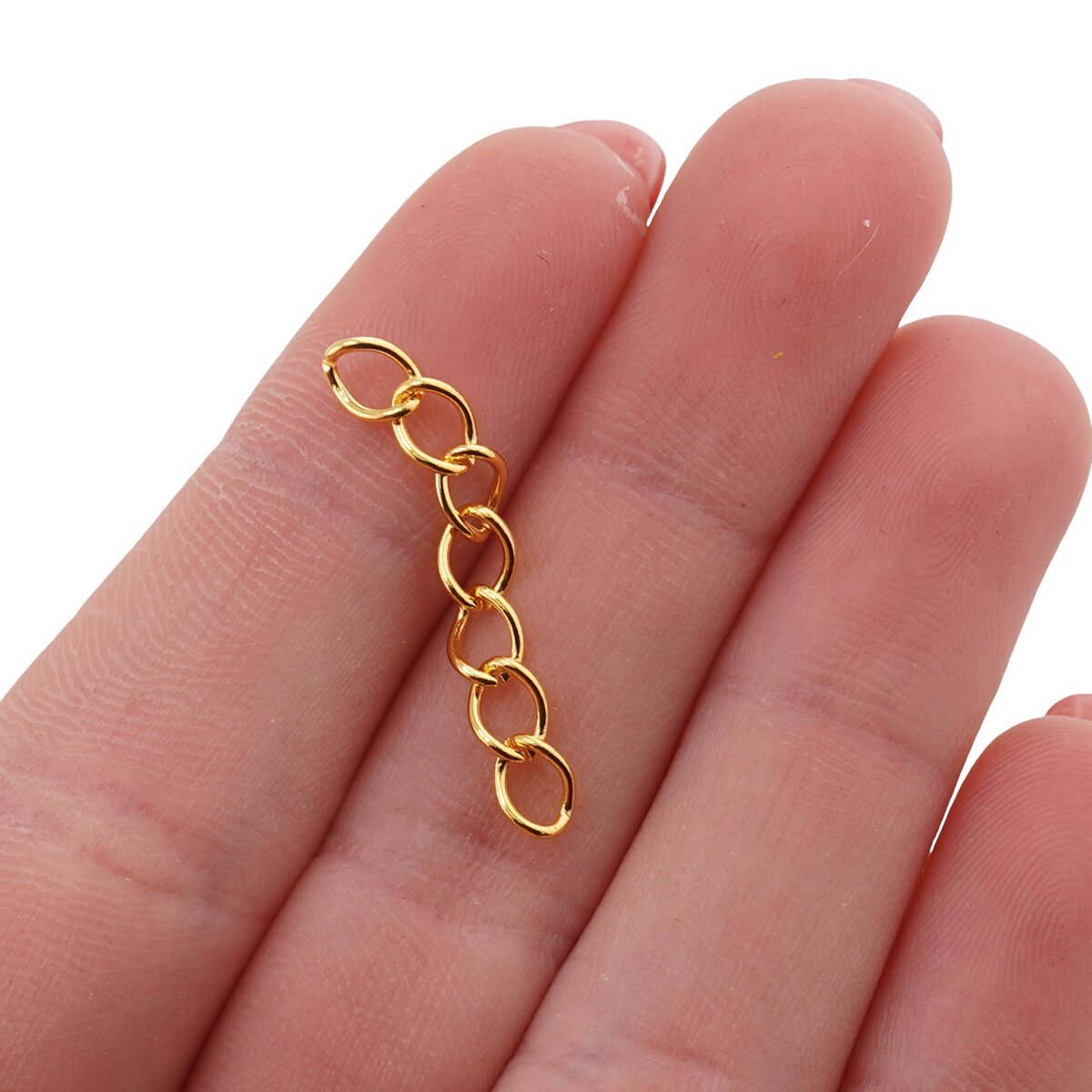Aceste accesorii din metal auriu sunt o alegere practică pentru ajustarea și finisarea bijuteriilor realizate manual. Sub formă de lănțișoare de prelungire, ele se atașează la capătul bijuteriei cu ajutorul unui crimpe și permit reglarea ușoară a lungimii, astfel încât colierele, brățările sau alte creații să fie mai confortabile și mai ușor de adaptat în funcție de purtare.