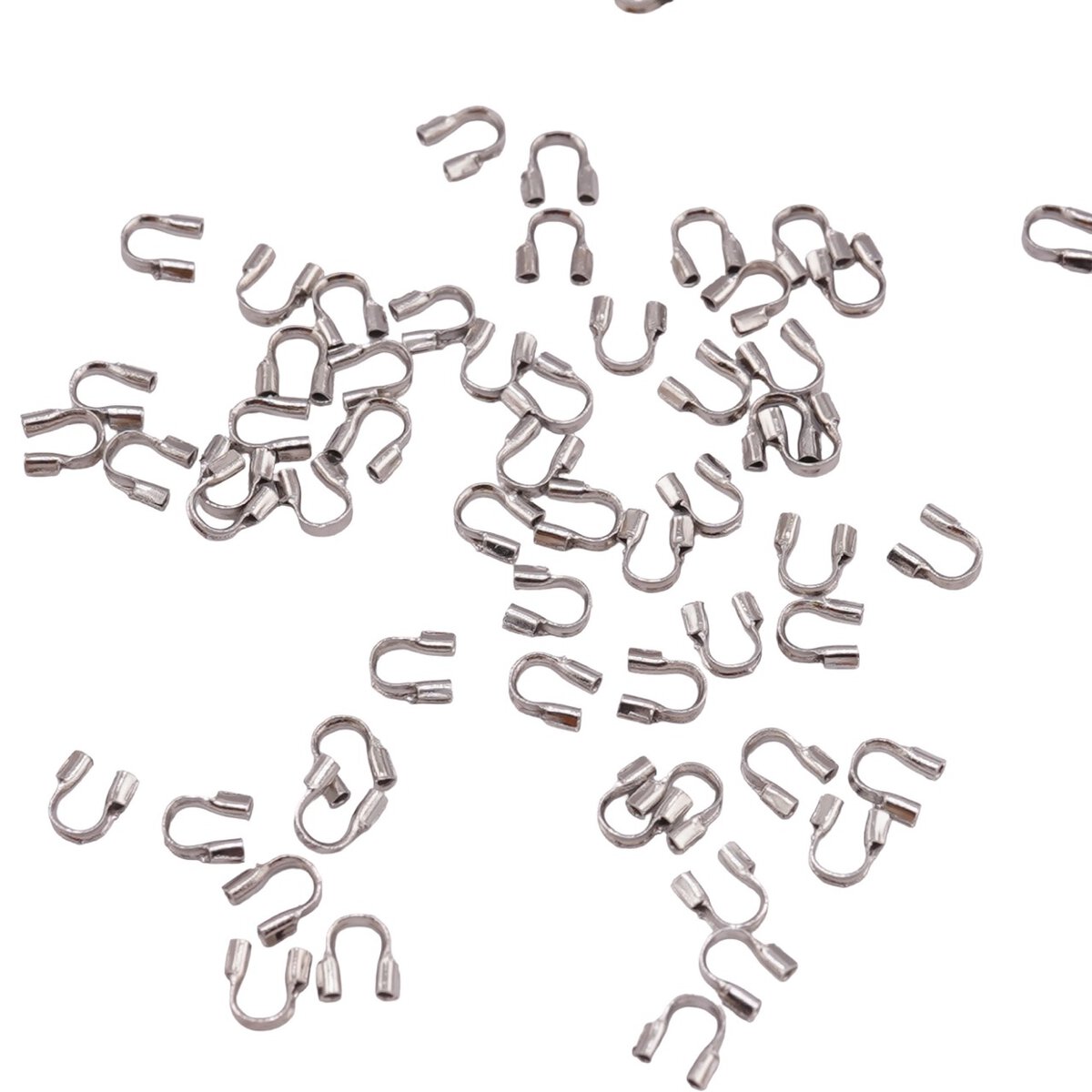 Protecțiile pentru fir sunt concepute pentru a susține firul în punctele de prindere, ajutând la prevenirea deteriorării în timp. Firul se așază în interiorul curbei metalice, iar capetele se fixează cu ajutorul unui crimpe, pentru o prindere mai sigură și mai ordonată. Sunt potrivite pentru diverse proiecte de bijuterii, mai ales dacă lucrezi cu coliere, brățări sau alte creații care includ sisteme de închidere.