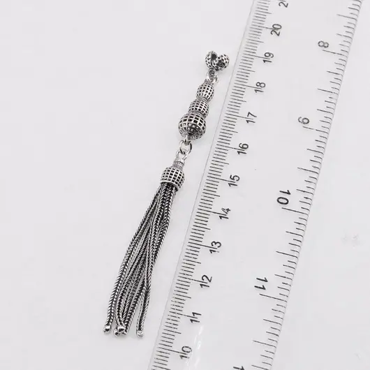 Accesoriu pandantiv din argint 925, model sfere texturate cu ciucuri impletiti - 8,7cm