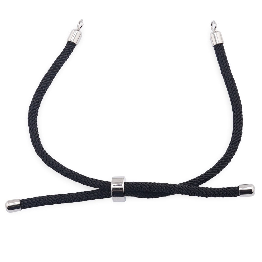 Acest accesoriu cu șnur din ață cerată culisantă este o alegere practică pentru realizarea brățărilor, colierelor sau altor proiecte handmade. În combinația clasică de negru cu capete argintii, se integrează ușor în diferite stiluri de bijuterii și oferă un aspect curat, ușor de purtat zi de zi.