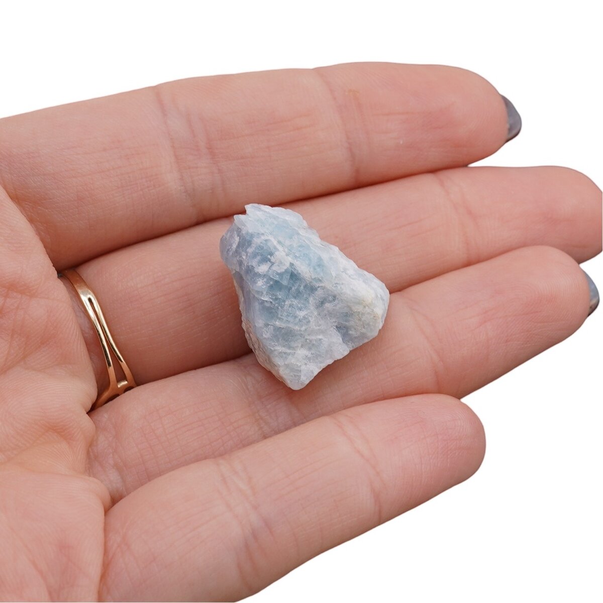 Acvamarinul brut este un cristal al calmului, clarității mentale și protecției emoționale. Este folosit pentru a reduce stresul, a încuraja comunicarea sinceră și a sprijini curajul interior. Forma sa naturală păstrează vibrațiile autentice ale Pământului.
