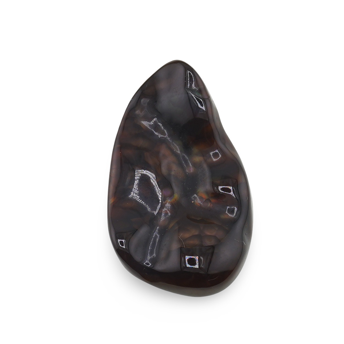 Agatul de foc este o varietate rară de agat, cunoscută pentru nuanțele sale vibrante de roșu, portocaliu și maro, ce dau impresia de flăcări. Este asociat cu curajul, vitalitatea și protecția. Se spune că sprijină încrederea în sine, aduce energie pozitivă și echilibru emoțional, fiind un talisman puternic împotriva energiilor negative.