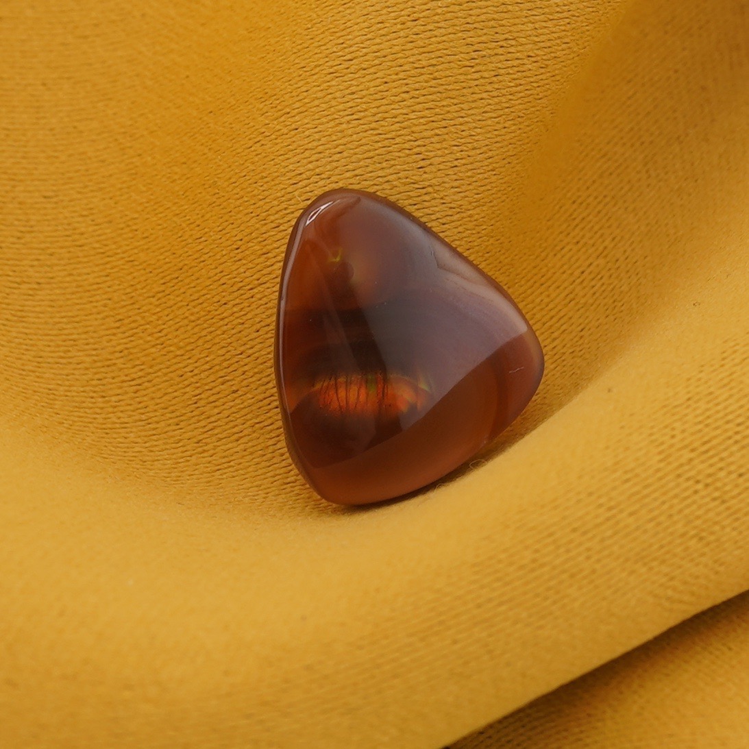 Agatul de foc este o varietate rară de agat, cunoscută pentru nuanțele sale vibrante de roșu, portocaliu și maro, ce dau impresia de flăcări. Este asociat cu curajul, vitalitatea și protecția. Se spune că sprijină încrederea în sine, aduce energie pozitivă și echilibru emoțional, fiind un talisman puternic împotriva energiilor negative.