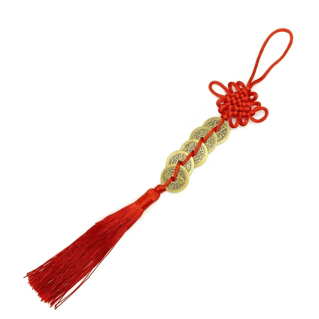 Amuleta Canaf Feng Shui cu 5 Monede I-Ching și Nod Mistic Roșu