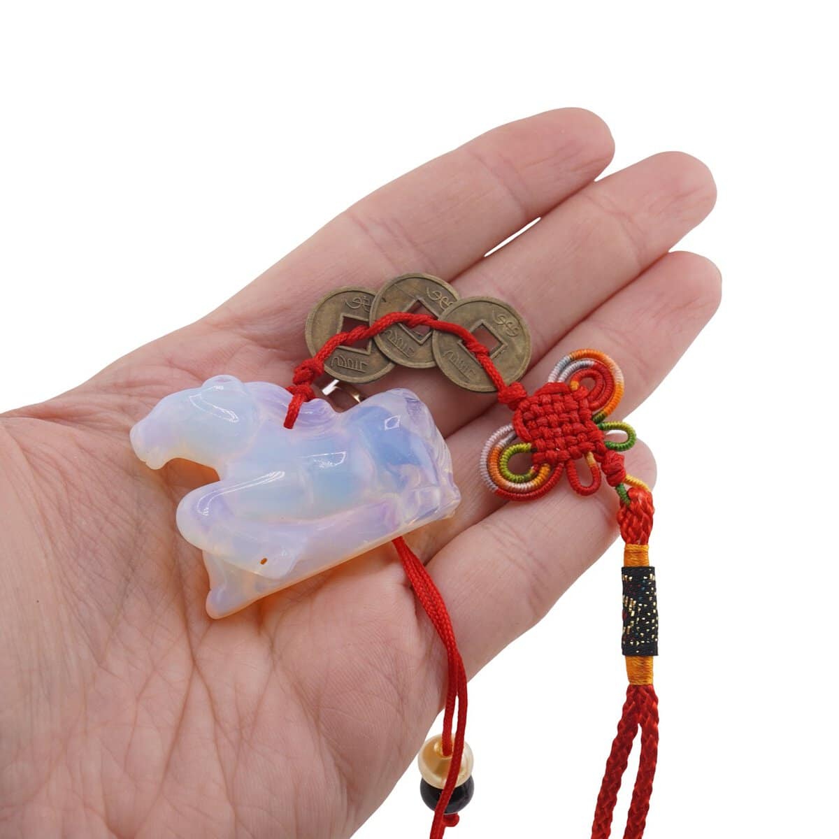 Amuleta Feng Shui cu Cal din Opalit, nod mistic și monede, 2026