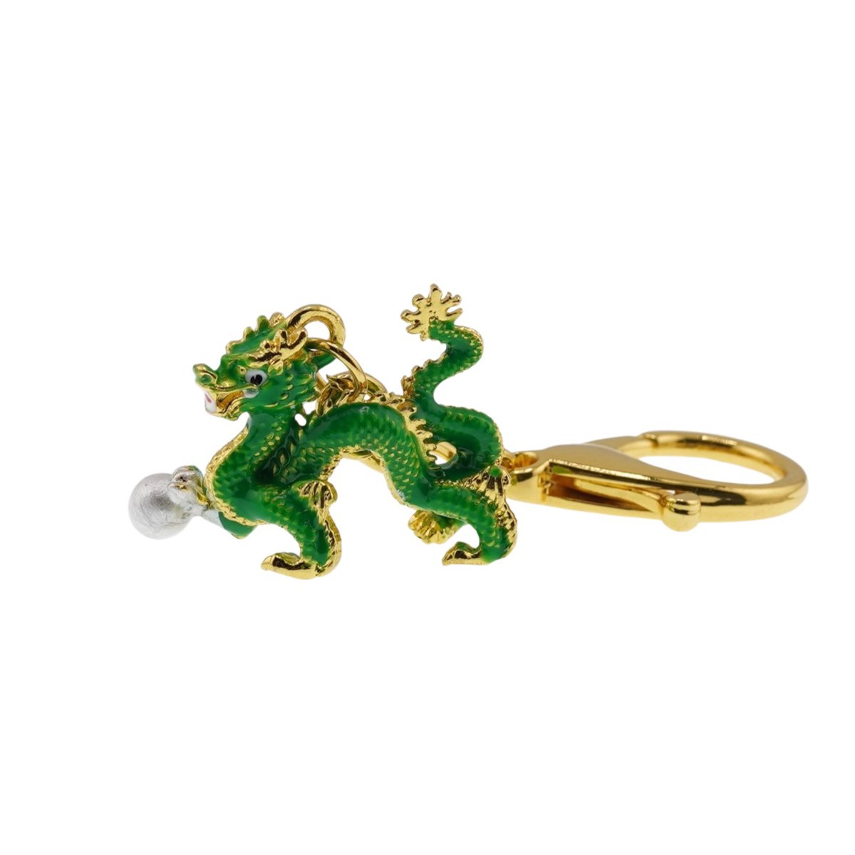 Amuleta Feng Shui din metal Dragon verde cu perla 2024