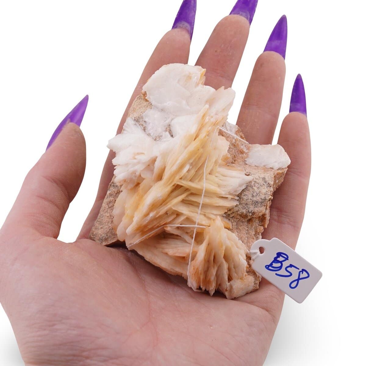 Barita, cristal unicat B58, este o piesă naturală cu un aspect delicat, ideală pentru tine dacă îți dorești mai multă claritate în gânduri și echilibru emoțional. Provenită din Maroc, această barită 100% naturală păstrează frumusețea brută a mineralului, cu forme și structuri care invită la contemplare și introspecție.