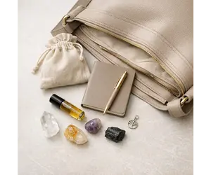O selectie echilibrata de obiecte mici pe care le poti tine in geanta pentru mai multa claritate, calm si prezenta in ritmul obisnuit al zilei.