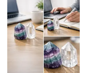 Fluorina si cuartul clar sunt doua cristale apreciate pentru claritate mentala si ordine interioara. Iata cum le poti folosi practic la birou, fara gesturi complicate.