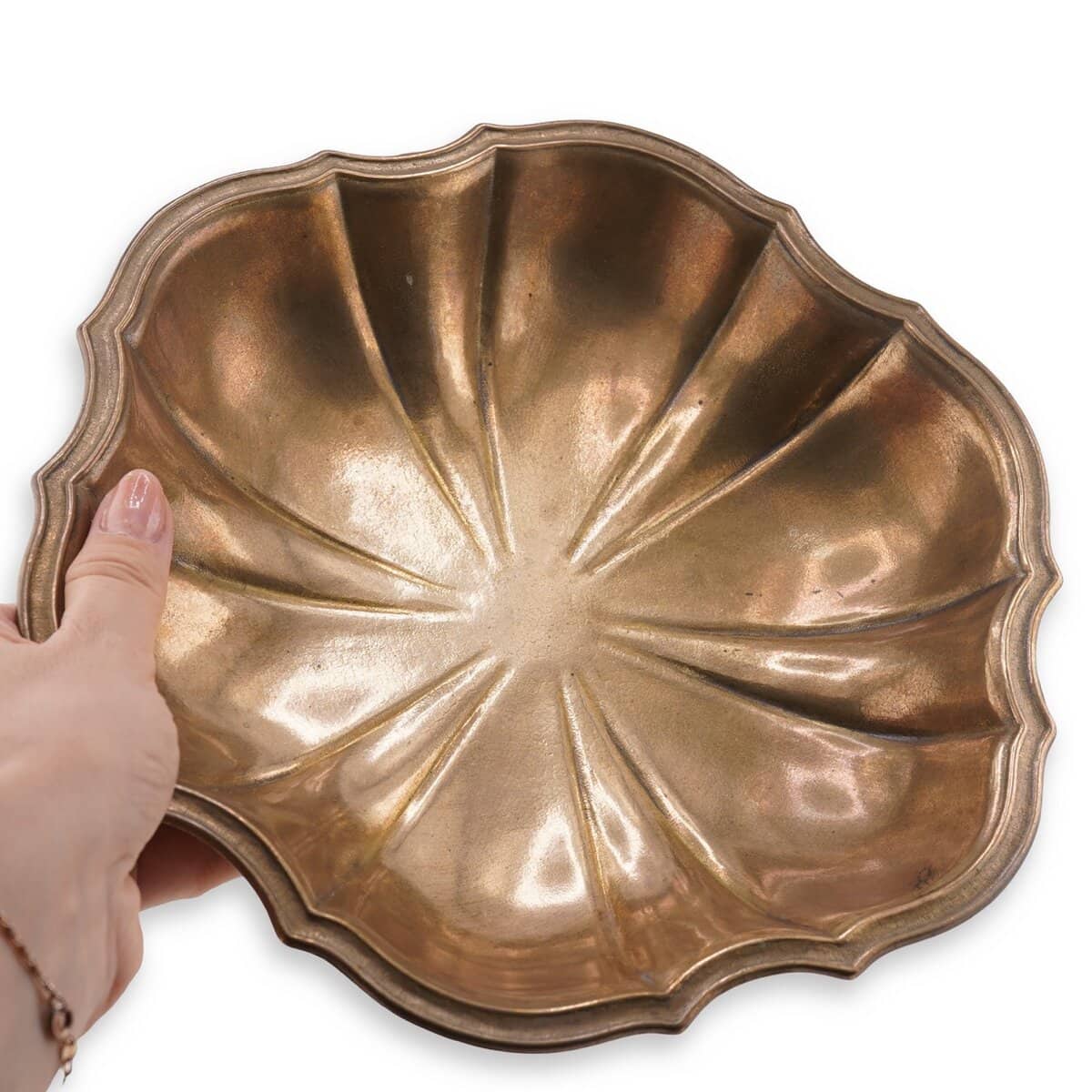 Acest bol vintage din alamă cu margine în relief aduce un farmec aparte oricărui spațiu, fiind o piesă decorativă care îmbină eleganța clasică cu rafinamentul discret al obiectelor de odinioară. Realizat integral din alamă, material cunoscut pentru rezistența și strălucirea sa caldă, bolul impresionează prin detaliile fine ale marginii reliefate, ce par să spună o poveste despre meșteșugul tradițional și atenția la detalii.