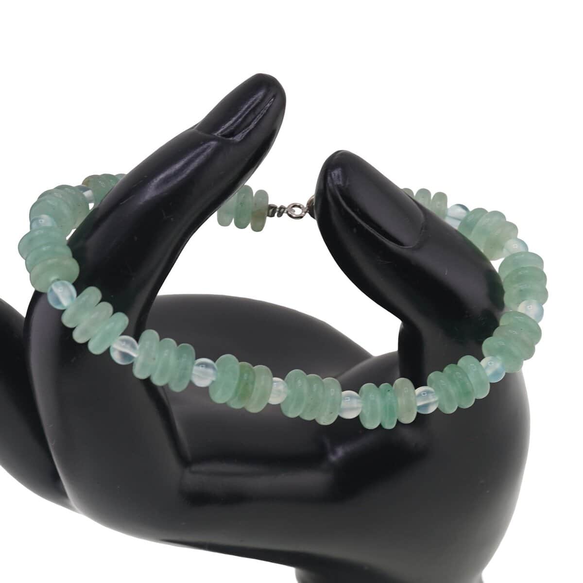 Bratara cu acvamarin si aventurin îmbină nuanțele blânde de albastru și verde într-un accesoriu discret, ușor de purtat în fiecare zi. Sferele fine de acvamarin de 4 mm alternează cu rondelele de aventurin verde de 6–7 mm, formând o combinație armonioasă între calm emoțional și energie pozitivă, potrivită pentru tine dacă îți dorești mai multă claritate și echilibru în viața de zi cu zi.