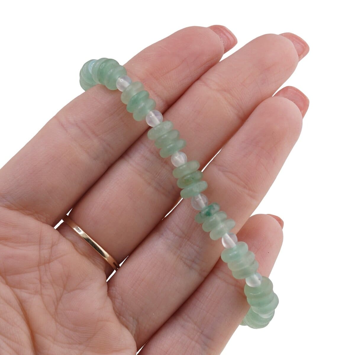 Acvamarinul completează perfect aventurinul, aducând o notă de liniște și claritate. Albastrul său plăcut este adesea asociat cu calmul emoțional, cu o comunicare mai deschisă și cu stări interioare mai echilibrate. Împreună, cele două tipuri de cristal natural creează o brățară care poate fi purtată atunci când ai nevoie de energie pozitivă, protecție energetică și o atitudine mai relaxată față de provocări.