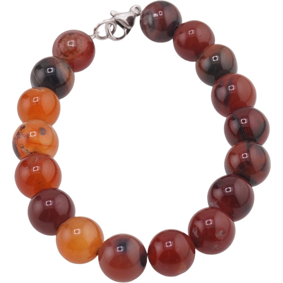 Bratara din Agat carneolizat cu sfere de 10 mm este o alegere potrivită pentru tine dacă îți dorești un accesoriu din cristal natural, cu o culoare portocalie plăcută și o energie blândă. Aspectul lucios al sferelor și nuanțele calde creează o prezență discretă, dar vizibilă, care atrage privirea fără să fie stridentă.