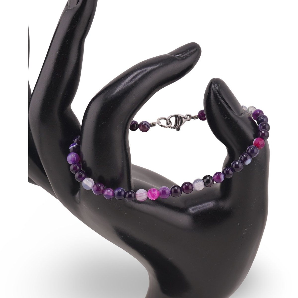 Bratara din Agat mov cu sfere de 4 mm este o alegere potrivita pentru tine daca iti doresti un accesoriu discret, usor de purtat zi de zi, care sa sustina echilibrul emotional si mental. Nuanta de mov, obtinuta prin vopsirea cristalului natural de agat, adauga o nota delicata de culoare, pastrand in acelasi timp energia pamantului din care provine piatra.