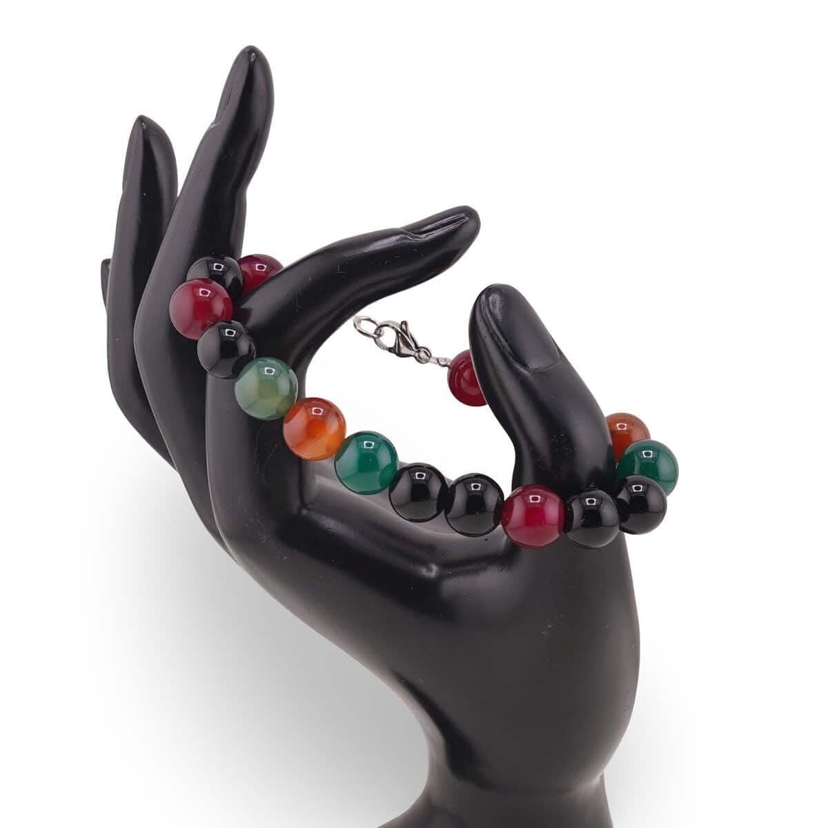 Bratara din Agat multicolor cu sfere de 10 mm este creată pentru tine dacă îți dorești mai multă stabilitate interioară și o stare de bine pe parcursul zilei. Fiecare bilă rotundă din cristal natural, ulterior vopsit pentru a evidenția nuanțele intense, aduce un plus de culoare și personalitate, păstrând în același timp energia specifică agatelor, cunoscute și ca „piatra echilibrului”.