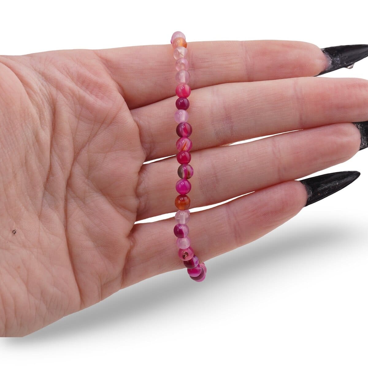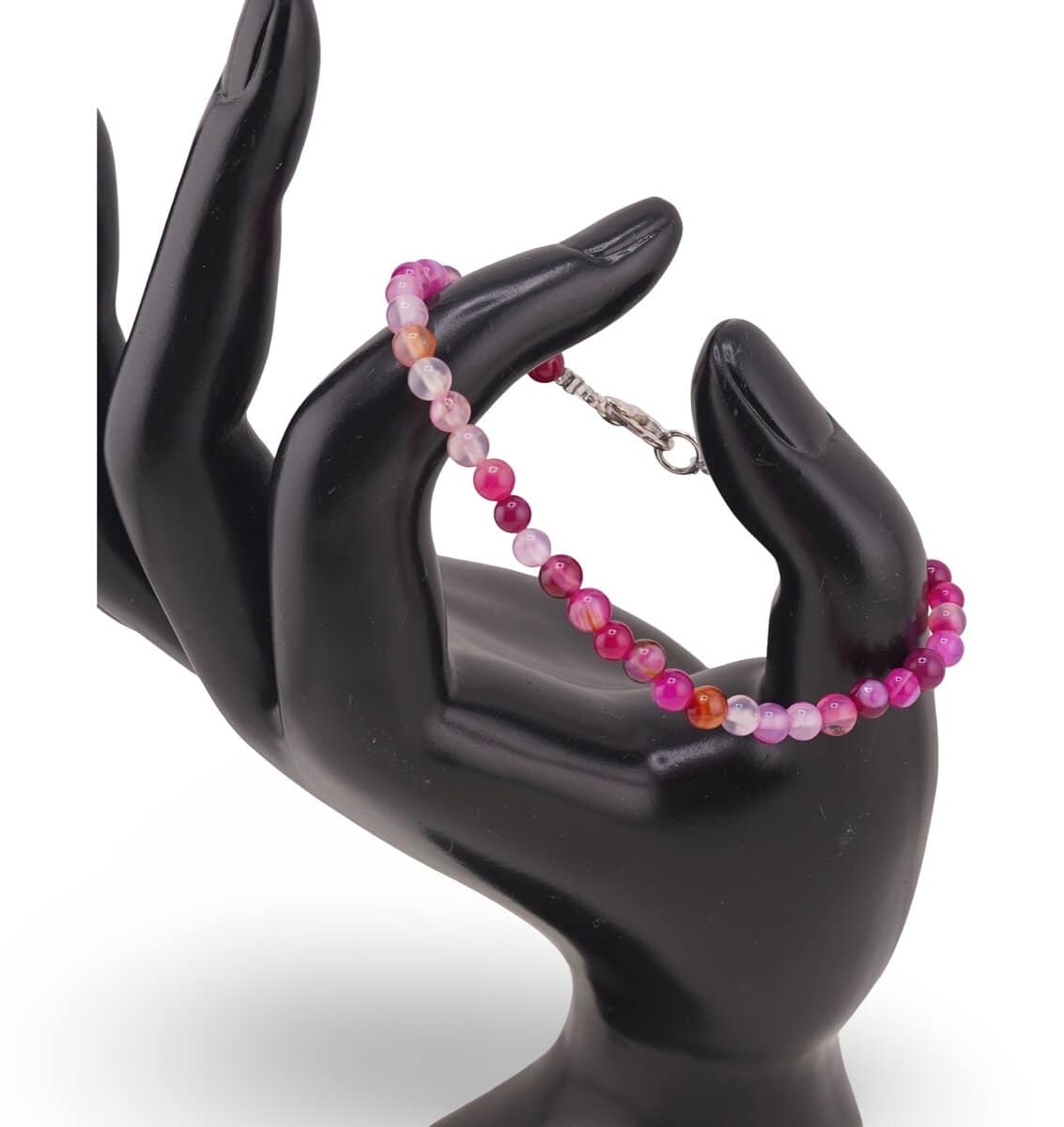 Cu duritatea de aproximativ 6,5–7 pe scara Mohs, agatul este o piatră semiprețioasă rezistentă, potrivită pentru purtare frecventă. Forma de sfere mici, de 4 mm, face brățara ușoară, subtilă și simplu de asortat, fie că o porți singură, fie în combinație cu alte brățări.