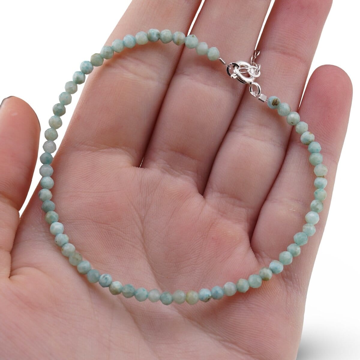 Cu nuanțe de albastru liniștitor, această brățară din amazonit natural 100% pune în valoare mici sfere fațetate de 3 mm, atent așezate pentru a prinde lumina într-un joc discret. Cunoscut și ca Amazonite, feldspat microclinic verde sau piatra speranței, amazonitul de proveniență rusească aduce o notă rafinată oricărei ținute și este potrivit pentru momentele în care îți dorești mai multă claritate și stare de bine.