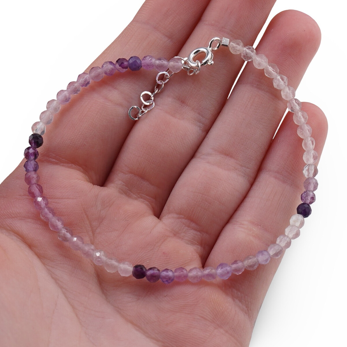 Alege o bijuterie care îmbină rafinamentul cu naturalețea: această brățară din Ametist 100% natural te întâmpină cu un degrade de movuri profunde și luminoase. Sferele fațetate, fine, de aproximativ 3–3,5 mm, prind frumos lumina și aduc la încheietură acel echilibru discret pe care îl cauți zi de zi. Cunoscut și ca Amethyst, cuart violet sau „piatra înțelepciunii”, Ametistul pune accent pe simplitate și confort, transformând o piesă delicată într-un sprijin subtil pentru starea ta interioară.