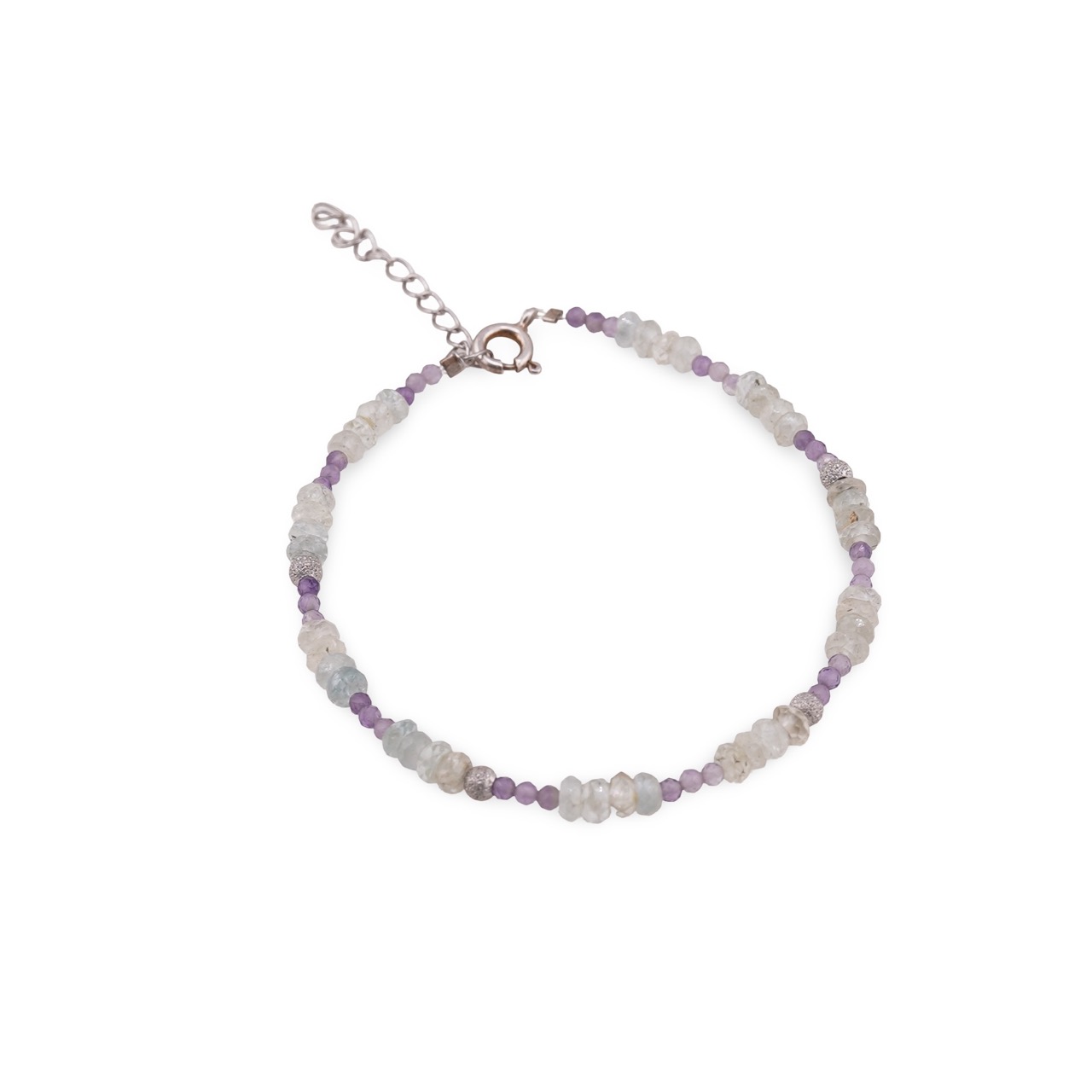 Bratara Ametist sfere fatetate 2mm, Topaz discuri 4mm si elemente de argint 925
