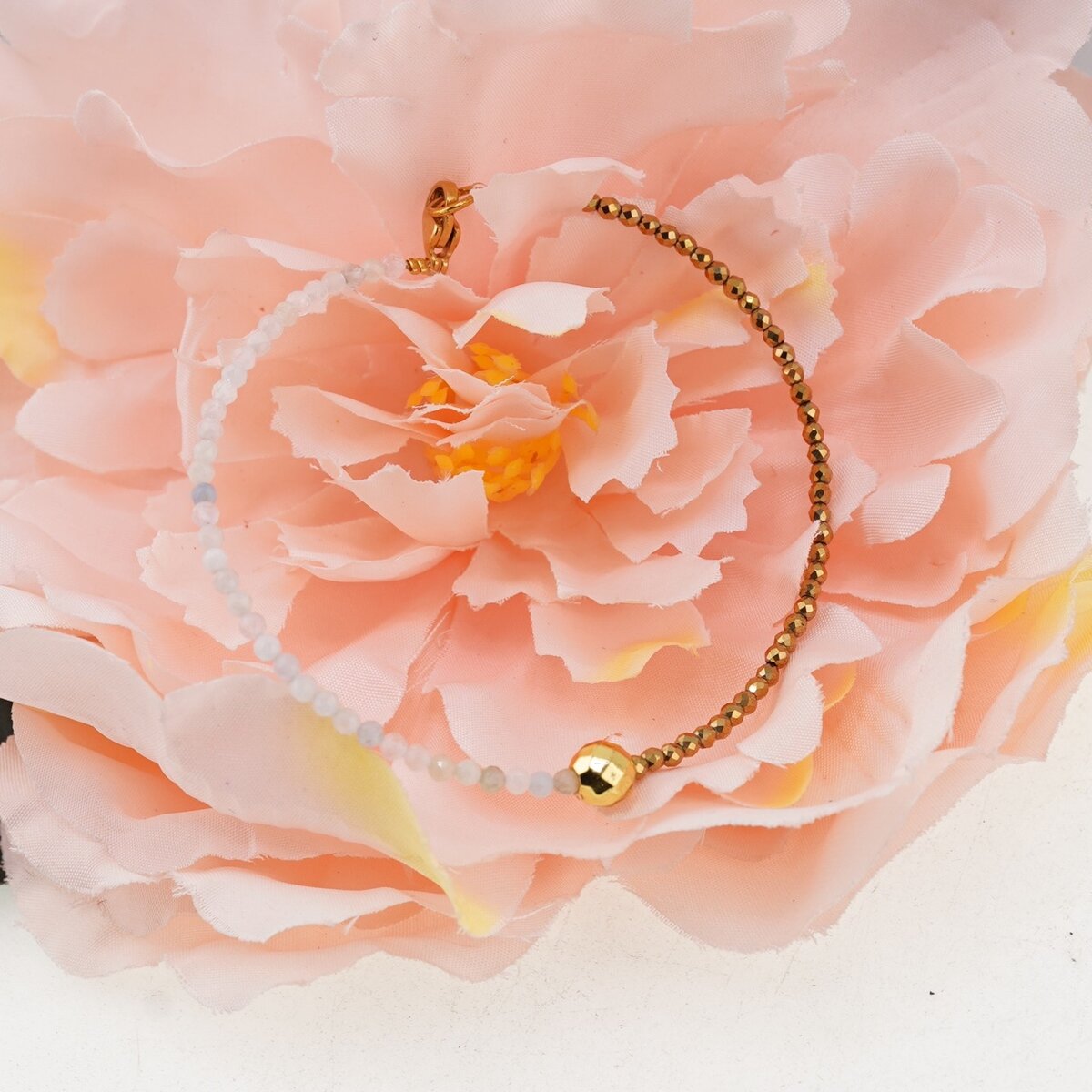 - Fiecare brățară este unică; pot exista variații naturale ale nuanței și modelului pietrelor.