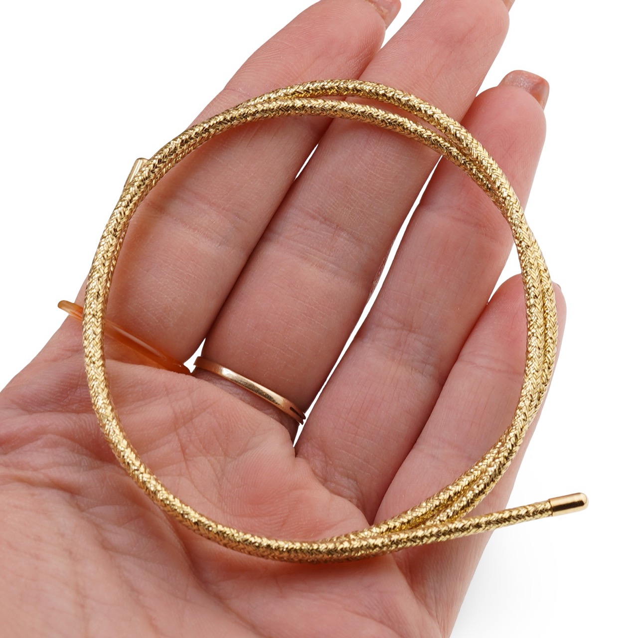Realizat din ață și prevăzut cu sistem magnetic, șnurul este ușor de folosit și confortabil la purtare. Nuanța aurie îi oferă un aspect cald și decorativ, potrivit atât pentru un look discret, cât și pentru combinații mai expresive. Poate fi purtat simplu, pentru un stil curat și minimalist, sau poate fi completat cu charmuri și pandantive, dacă vrei să creezi un accesoriu personalizat.