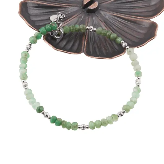 Bratara Crisopraz discuri fatetate cu bumbi gravati Argint 925, 4mm.