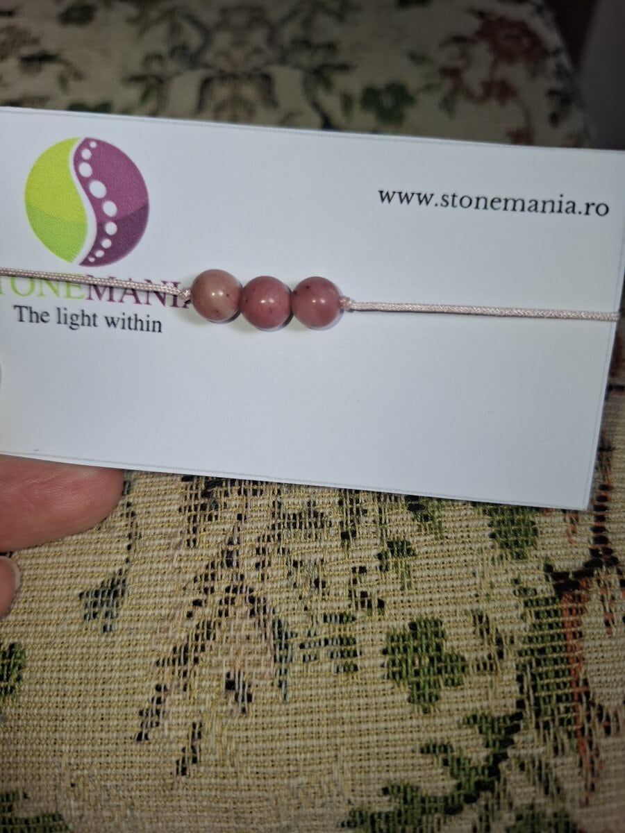 Bratara cu snur Rodonit roz sfere, 7mm.