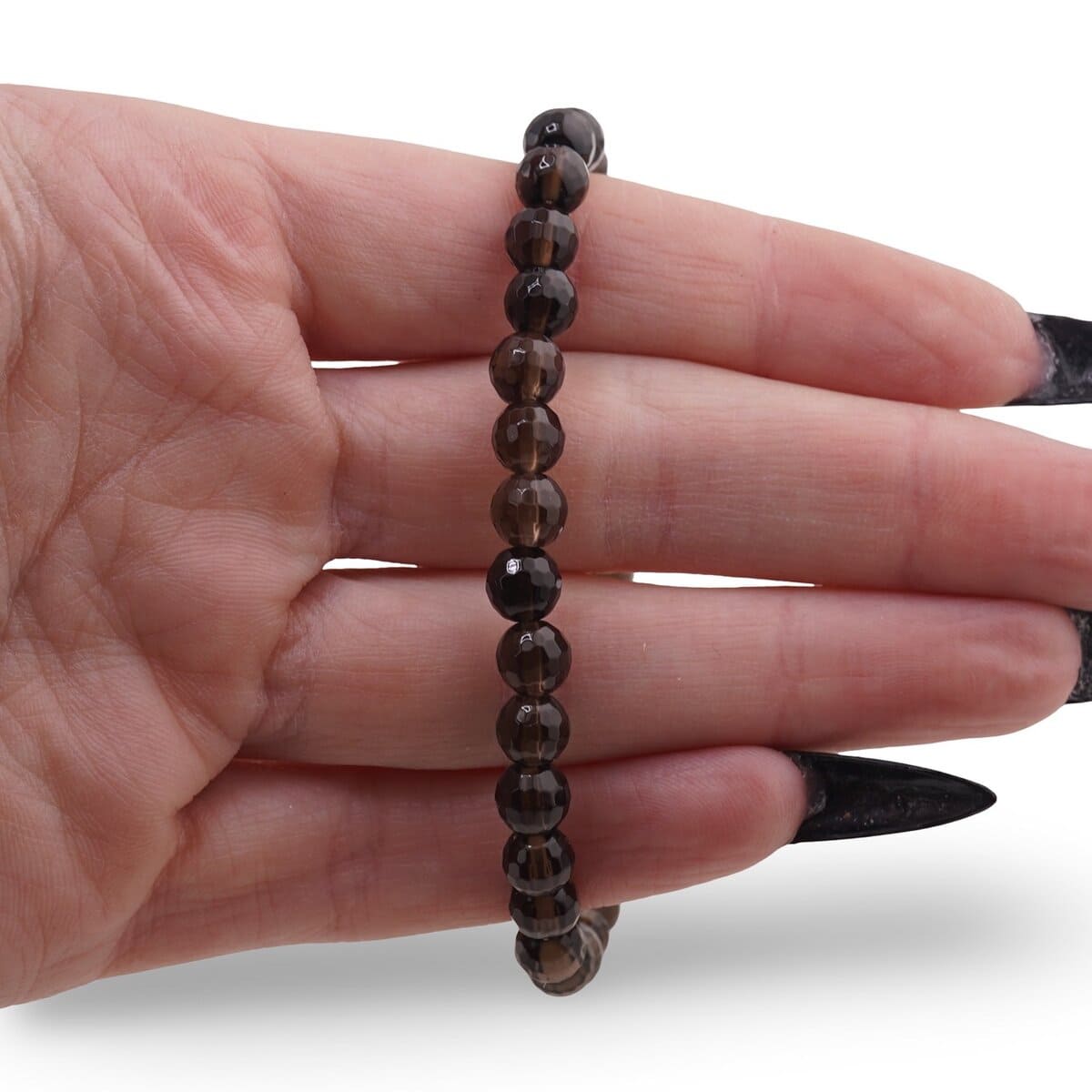 Bratara Cuart fumuriu sfere fatetate 6mm – eleganță discretă și echilibru