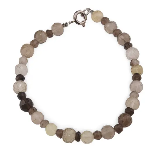 Fiecare cristal de cuart fumuriu din această brățară este 100% natural, atent șlefuit pentru a scoate în evidență luciul fin și jocul de lumini creat de fațete. Combinația dintre sferele fațetate și discurile fațetate oferă ritm și dinamism, astfel încât brățara nu arată monoton, ci capătă un aspect fluid și plăcut privirii.