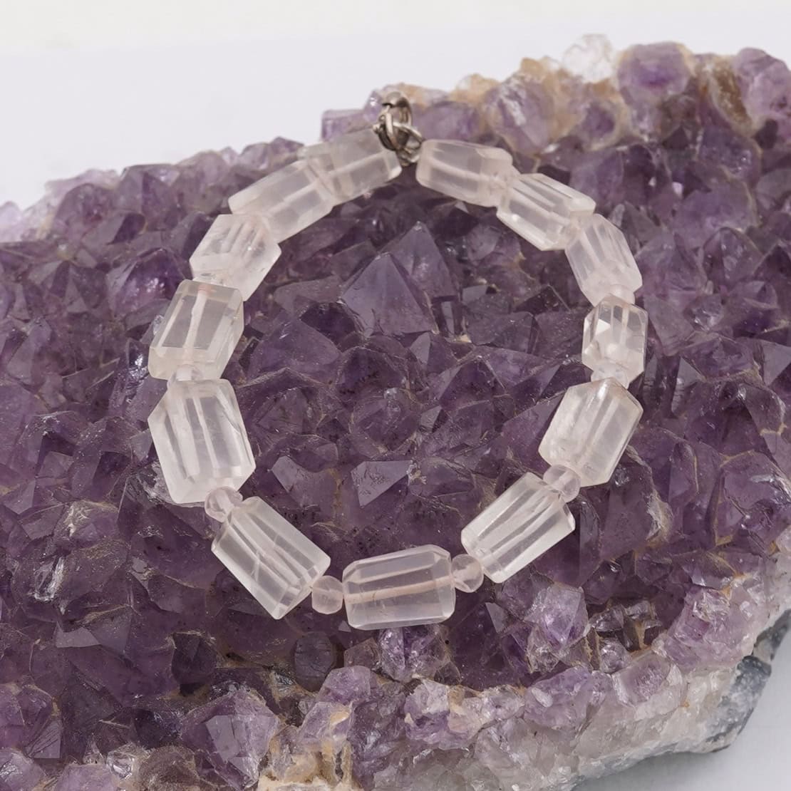 Această brățară din cuart roz te întâmpină cu o nuanță caldă de roz și cu o strălucire plăcută, obținută prin fațetare atentă. Este creată din cristal natural 100%, astfel încât te bucuri de frumusețea autentică a pietrei, cu reflexe care captează discret lumina la fiecare mișcare.