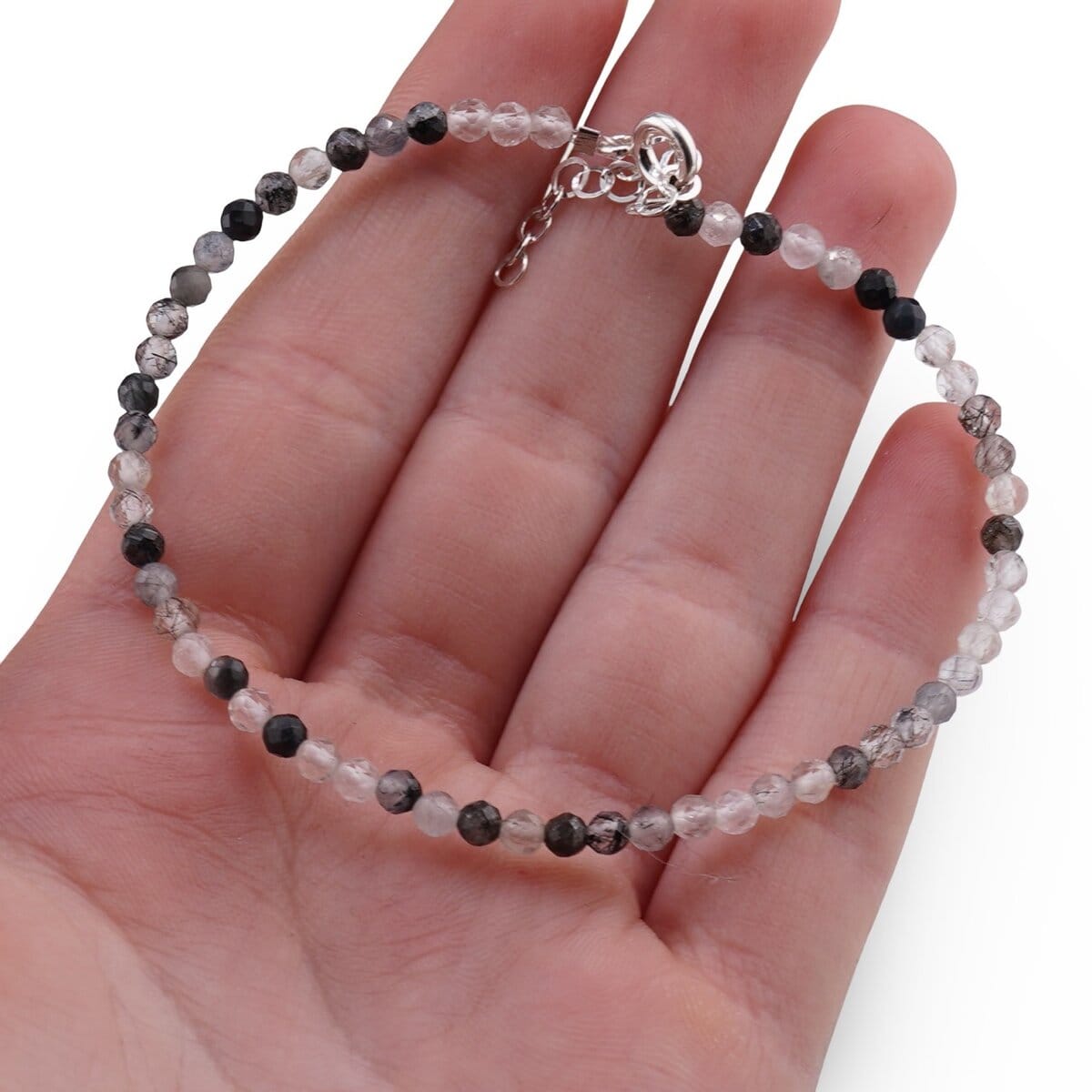 Brățara din cuart turmalinat se potrivește ușor cu ceasul sau cu alte brățări subțiri, astfel că o poți purta atât singură, cât și în combinații. Adaugă un accent rafinat unei ținute office sau completează o apariție casual, atunci când vrei un detaliu cu personalitate, dar fără să iasă în evidență în mod strident.