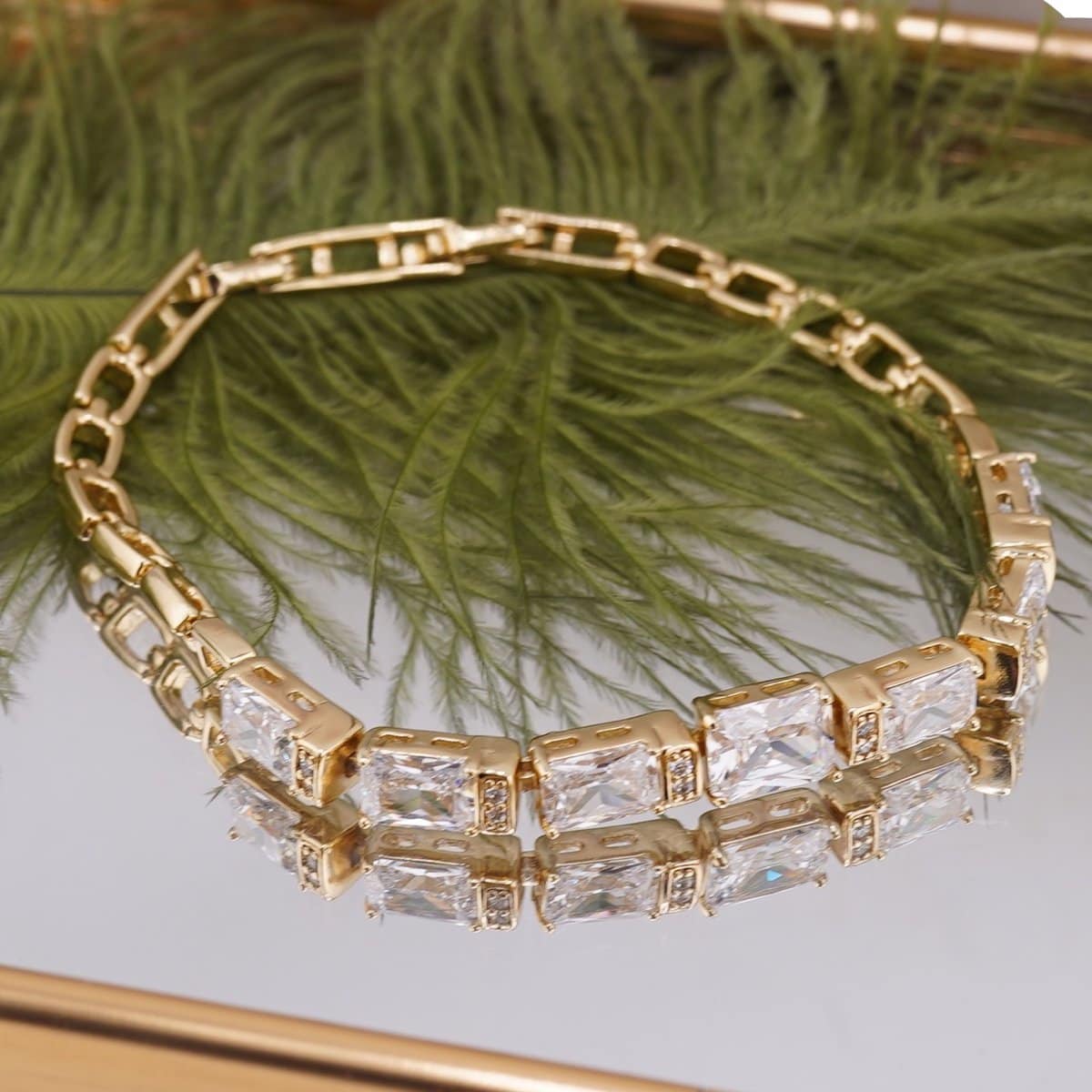 Bratara din cupru placat cu aur galben 14k, în model glam cu zirconii mari, este gândită pentru tine dacă îți dorești un accesoriu elegant, dar și un sprijin discret pentru echilibrarea ta interioară. Nu este doar o bijuterie aurie rafinată, ci și un companion pe care îl poți purta în fiecare zi, atât la birou, cât și la ieșiri speciale.
