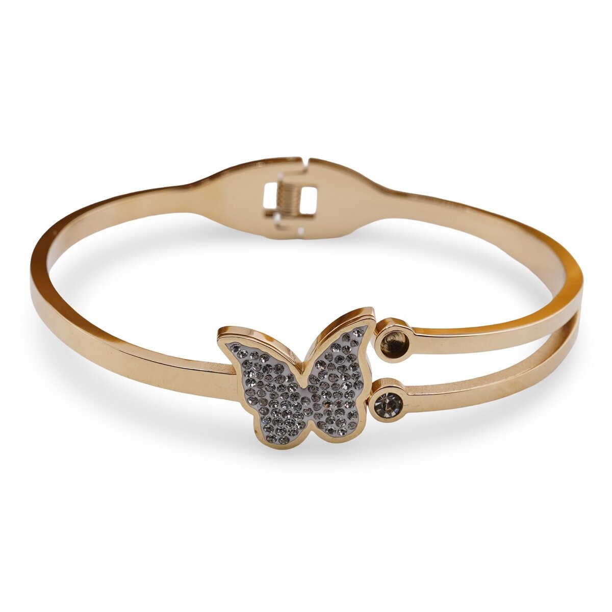 Brățară Cupru placat cu aur galben 18k, cu fluture și zirconii centrale încrustate