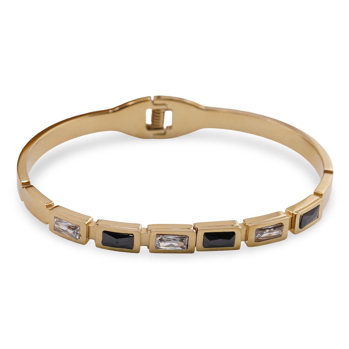 Brățară cupru placat cu aur galben 18k cu zirconii dreptunghiulare baguette albe și negre