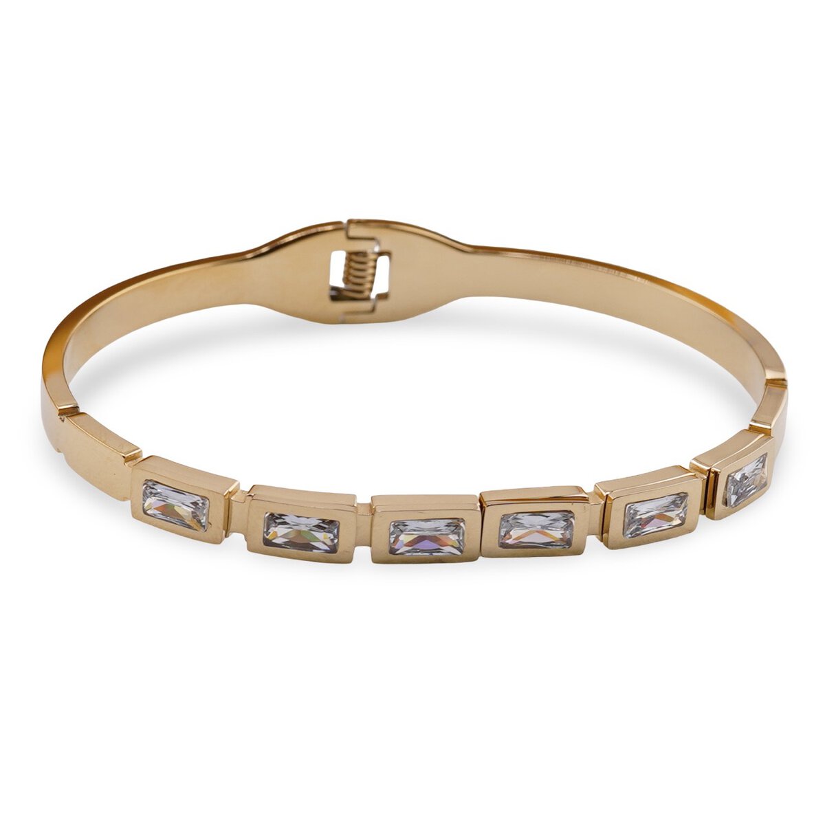 Brățară cupru placat cu aur galben 18k cu zirconii dreptunghiulare baguette