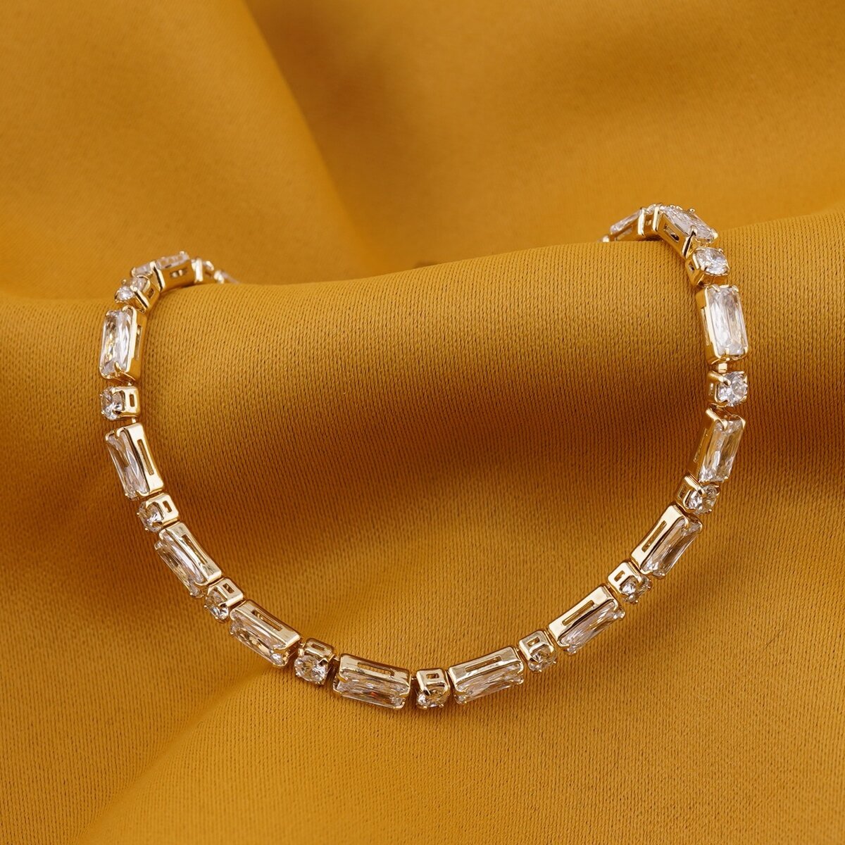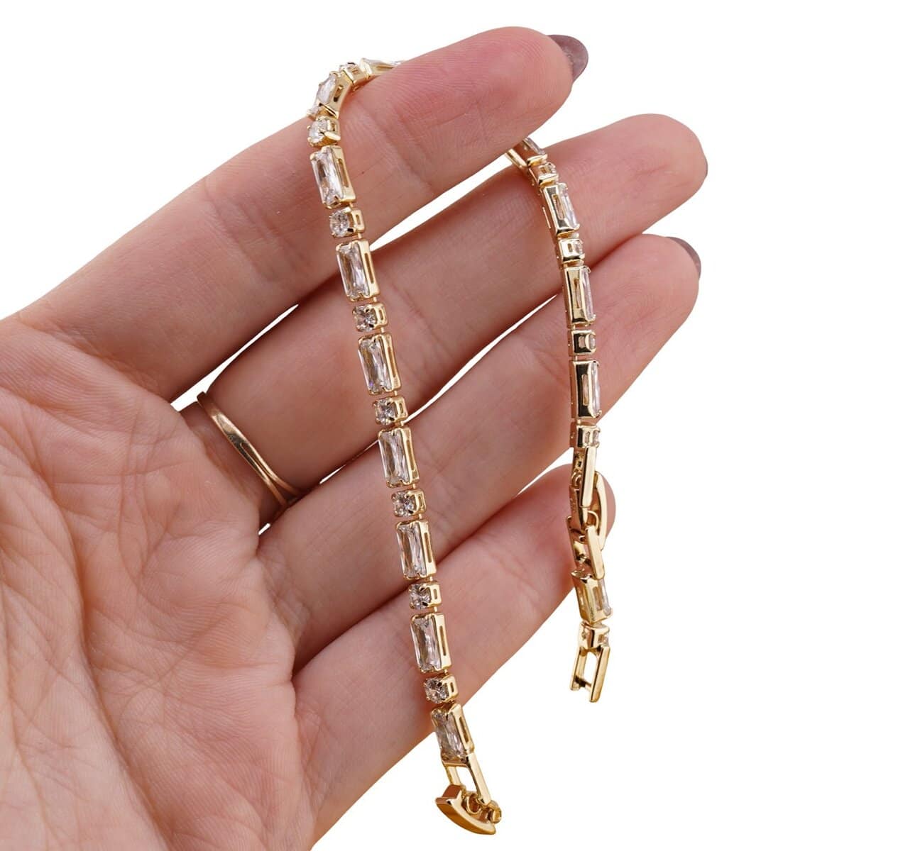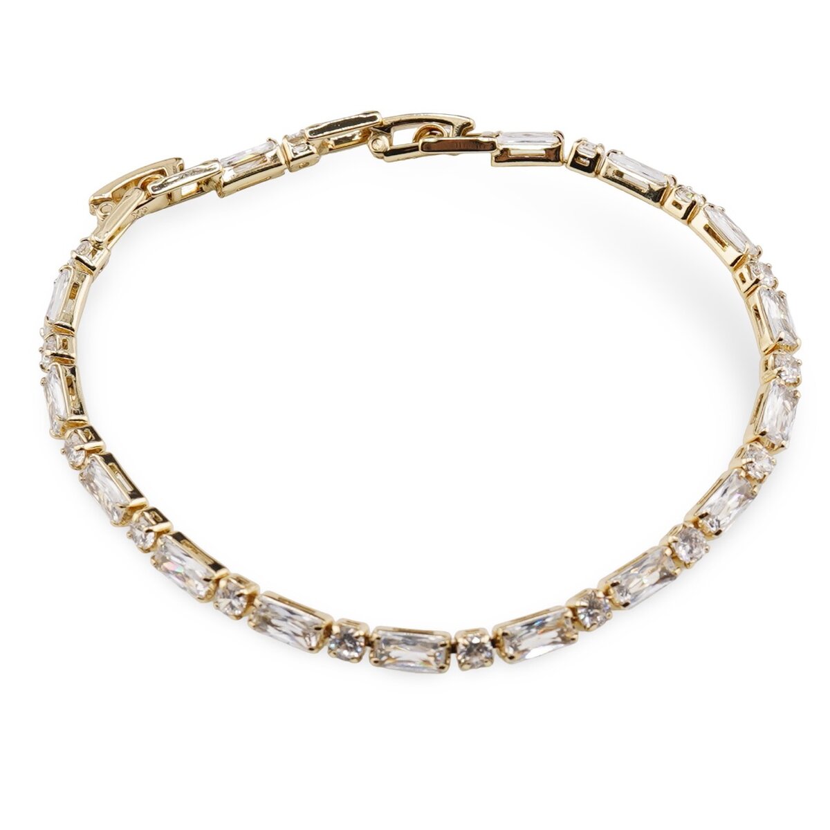 Brățară cupru placat cu aur galben 18k, cu zirconii rotunde și dreptunghiulare