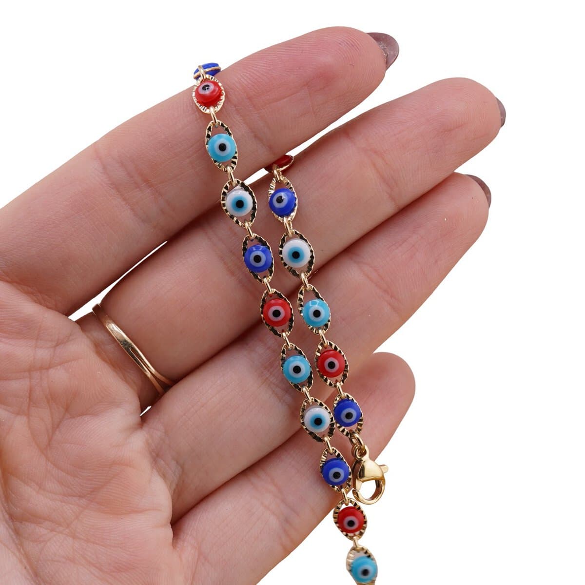 Bratara Cupru placat cu aur galben 18k, ochi protector multicolor