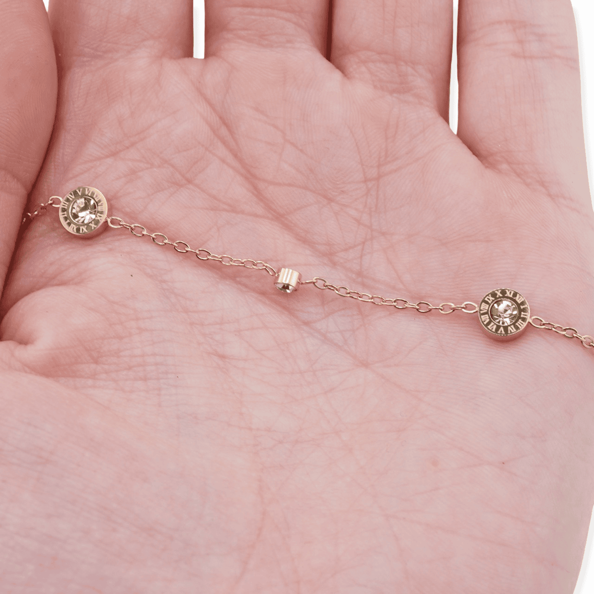 Bratara din cupru placat cu aur galben 18k, cu zirconii si cifre romane