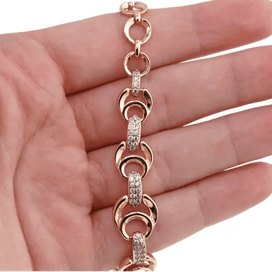 Bratara din cupru placat cu aur roz 18k cu elemente din zirconiu, model cercuri
