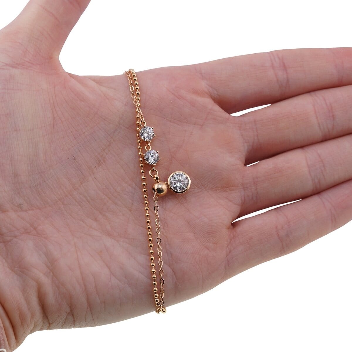 Alege brățara pe două rânduri cu charm din zirconii atunci când vrei o piesă fină, aurie, cu nuanțe de aur roz, care să-ți completeze ținutele cu naturalețe și să te însoțească zi de zi.