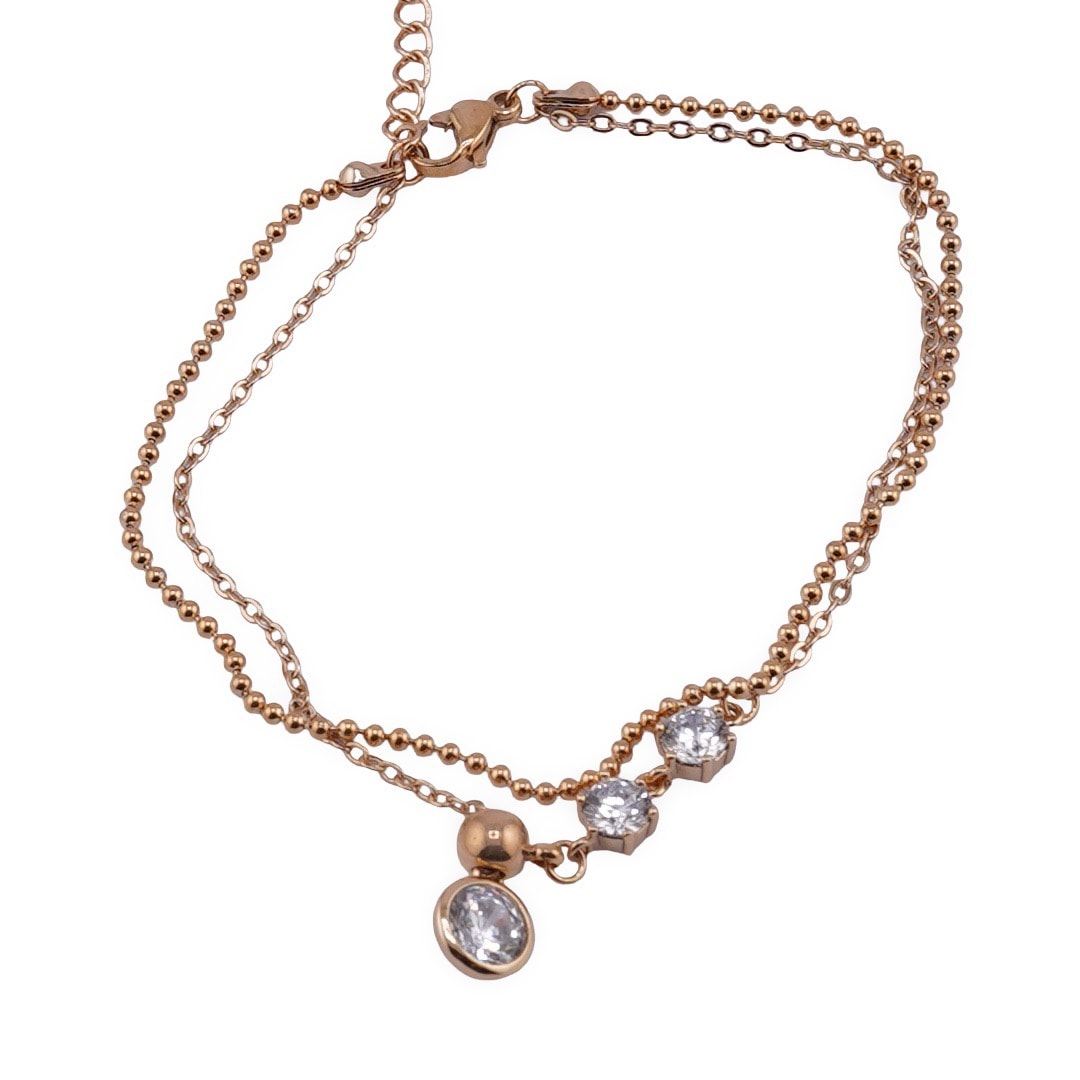 Bratara din cupru placat cu aur roz 18k, pe doua randuri si charm cu zirconii