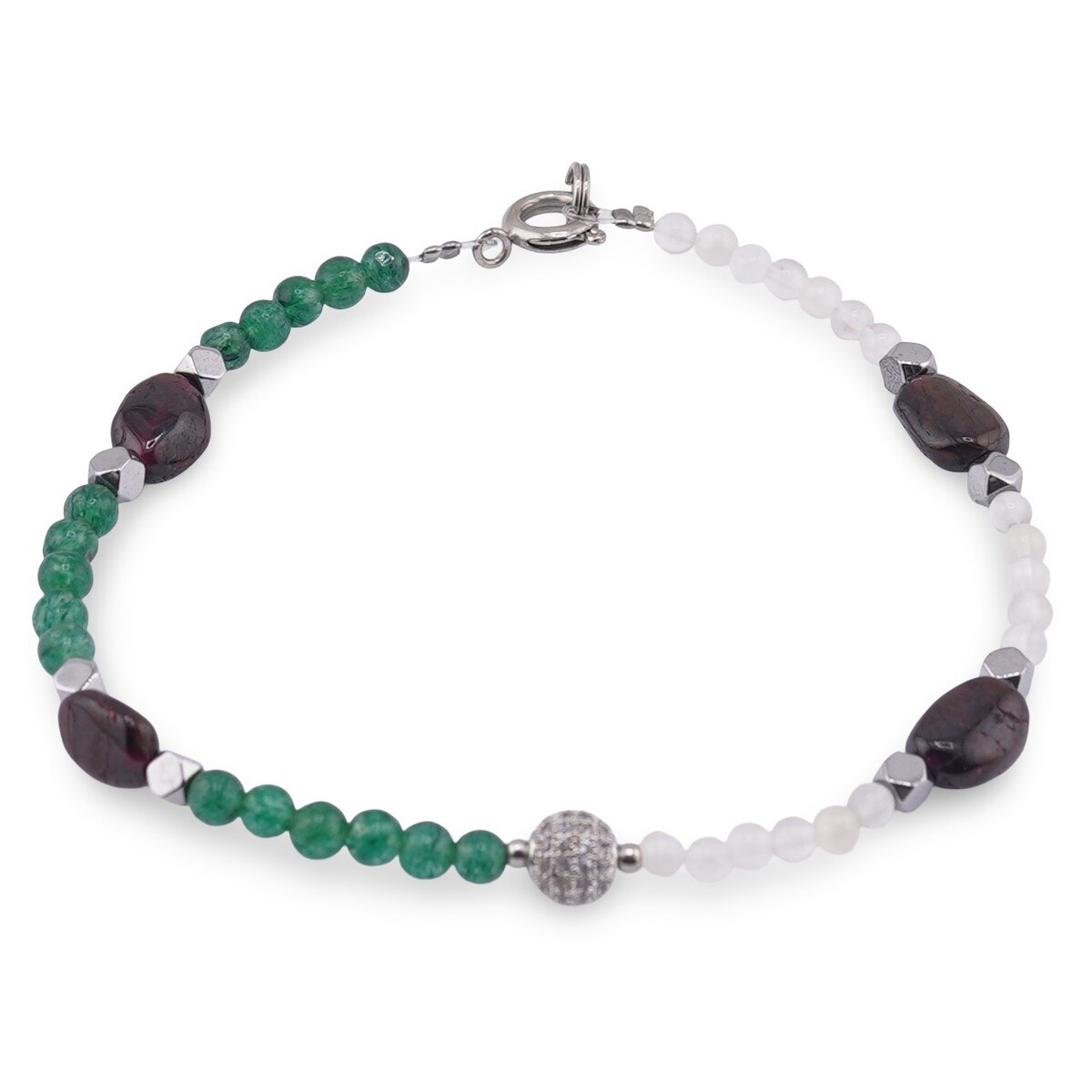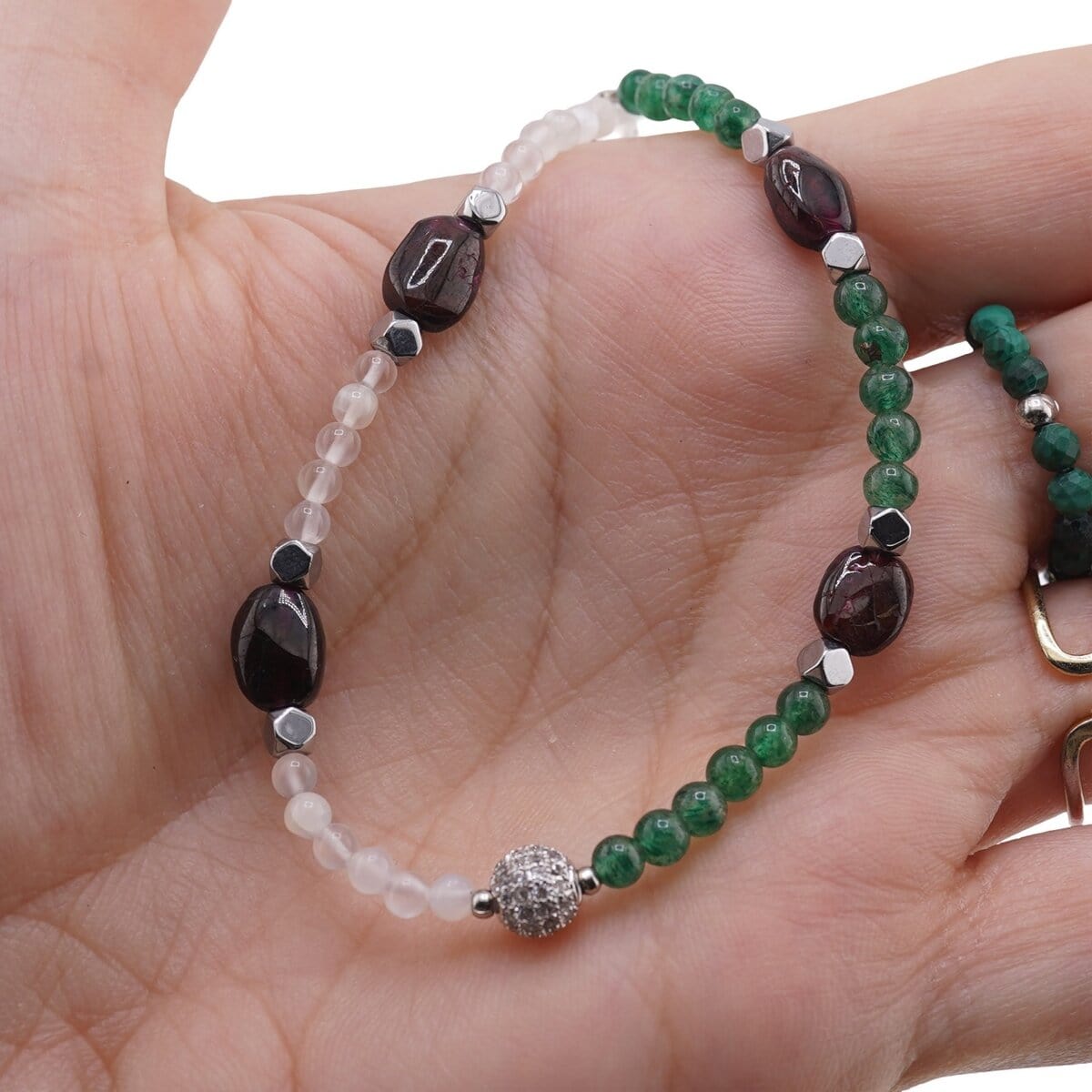 - SiO2 (Dioxid de siliciu; cuart cu incluziuni de fuchsit; hematit sau mica)