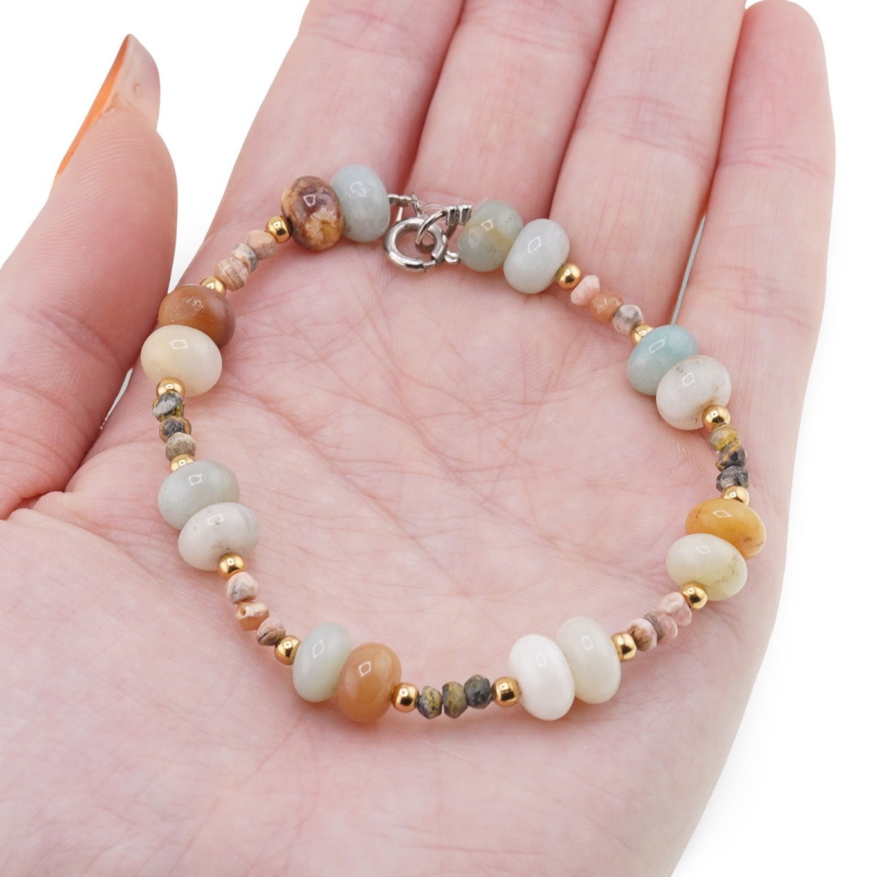 Bratara Inima Deschisa - Rodocrozit 3mm si Amazonit 8mm