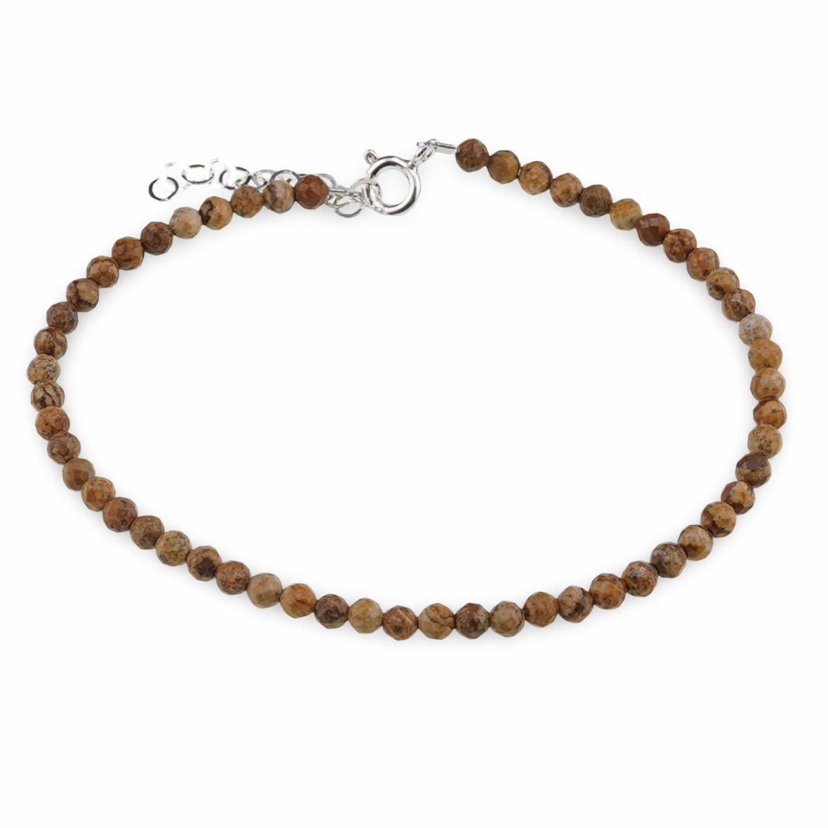 Inspirată de culorile pământului, această brățară din Jasp Peisaj reunește tonuri calde de maro, bej și nisip într-un design fin, ușor de asortat zi de zi. Cristalele naturale 100%, sculptate în sfere fațetate de 3,5 mm, surprind lumina discret și aduc la încheietură un ritm calm, aproape meditativ. Este o alegere plăcută dacă îți dorești o bijuterie cu pietre semiprețioase care să transmită naturalețe și echilibru.