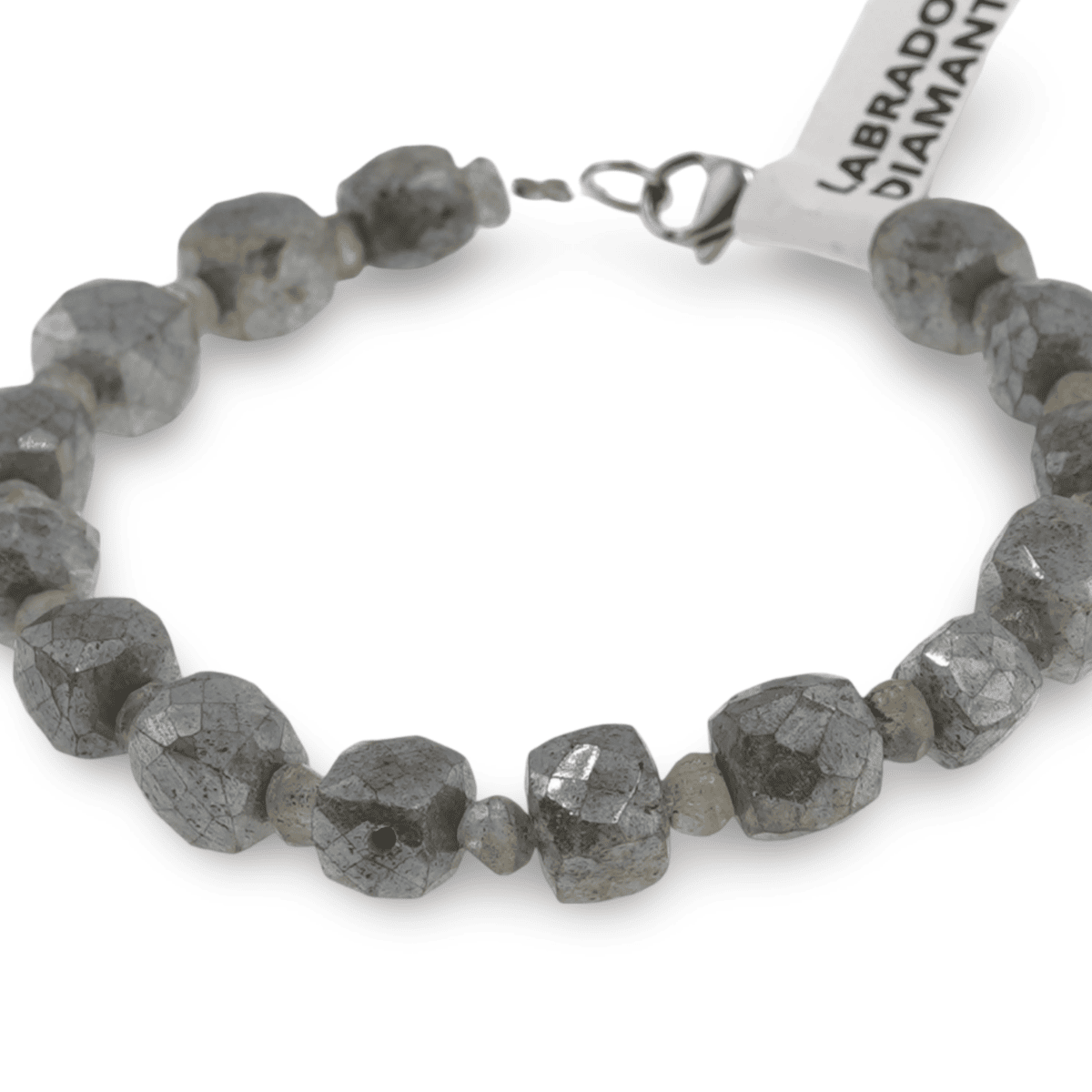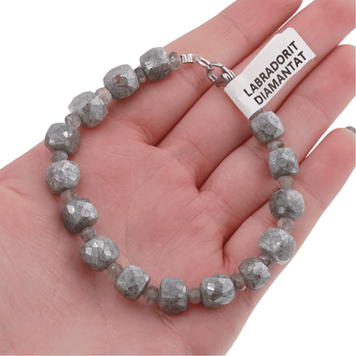 Bratara Labradorit diamantat cuburi fatetate 7-8mm si discuri fatetate 4mm.