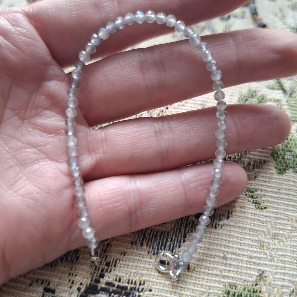 Brățara din labradorit cu sfere fațetate de 3 mm și elemente din Argint 925 te însoțește cu o notă calmă și luminoasă în fiecare moment. Cunoscut și ca labradorite sau feldspat plagioclazic, acest cristal aduce o estetică modernă și echilibrată, potrivită atunci când vrei să rămâi concentrat, inspirat și conectat la ritmul tău interior.