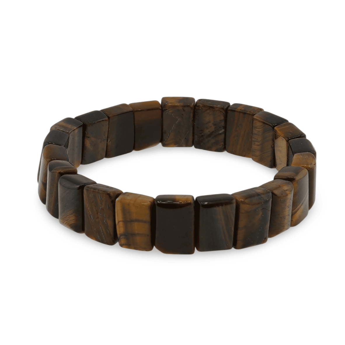 Bratara lata pe elastic cu cristale naturale Ochi de tigru, dreptunghiuri 12mm.
