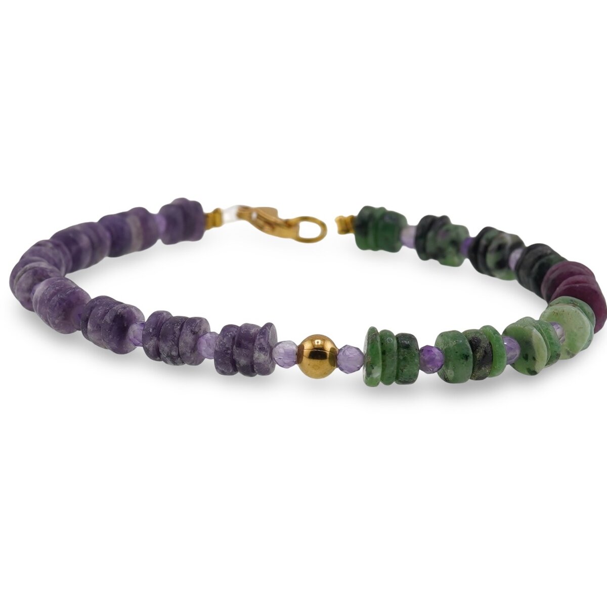 - Al2O3:Cr + Ca2Al3(SiO4)(Si2O7)O(OH) (Rubin in zoisit) ,